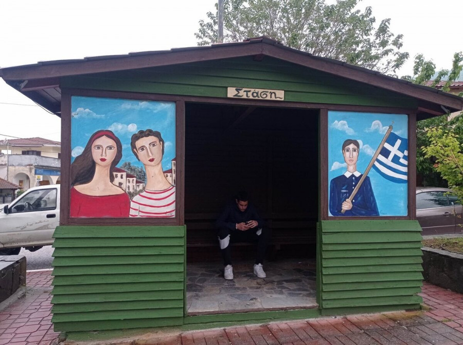 Χρώμα με προσωπογραφίες παιδιών αποκτά και η στάση λεωφορείων ενώ όλο το χωριό αποτυπώνεται στη στάση των ταξί!