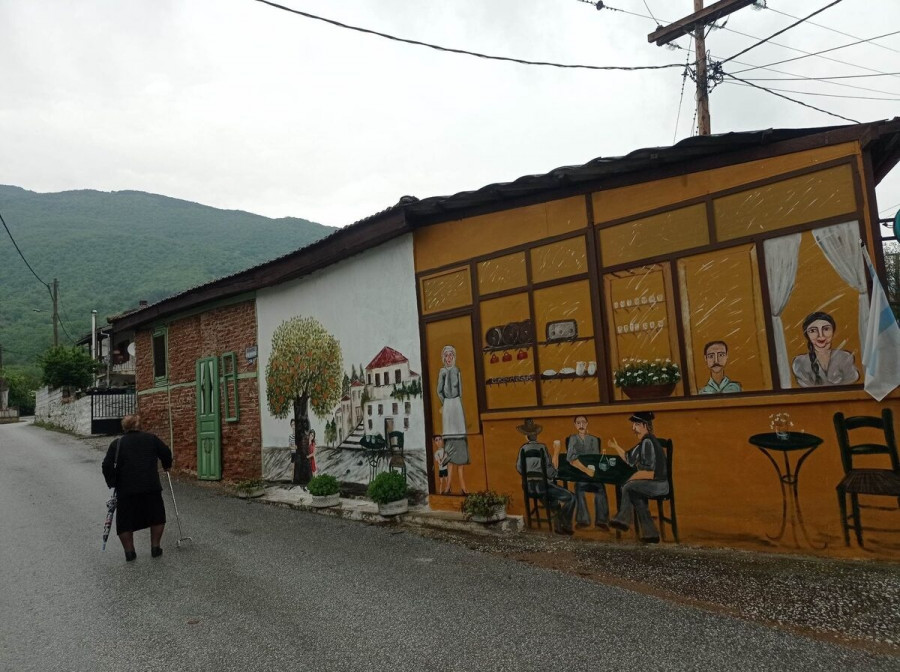 «Ζωγραφίσαμε 12 προσόψεις, αναδεικνύοντας την παλιά χρήση καταστημάτων αλλά και τη ζωή γενικότερα του χωριού, τις περασμένες δεκαετίες. Ο Πολιτιστικός Σύλλογος μας παρείχε κάποια χρώματα και μάστορες που μας βοήθησαν στις αναπαλαιώσεις των εξωτερικών όψεων των κτιρίων» αναφέρει η κ. Καραφλούδη.