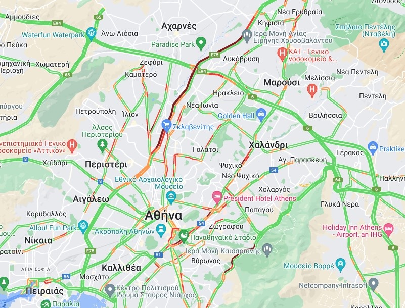Το μποτιλιάρισμα ξεκινάει από τη Κηφισιά μέχρι και το ύψος της Λένορμαν. Χαρακτηριστικό είναι ότι χρειάζεται περίπου μια ώρα για να φτάσει κάποιος από την Κηφισιά στο ΣΕΦ.
