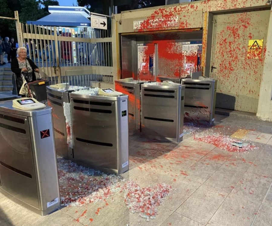 Οι άγνωστοι έσπασαν ακυρωτικά μηχανήματα εισιτηρίων νέου τύπου και ρίξανε μπογιές.