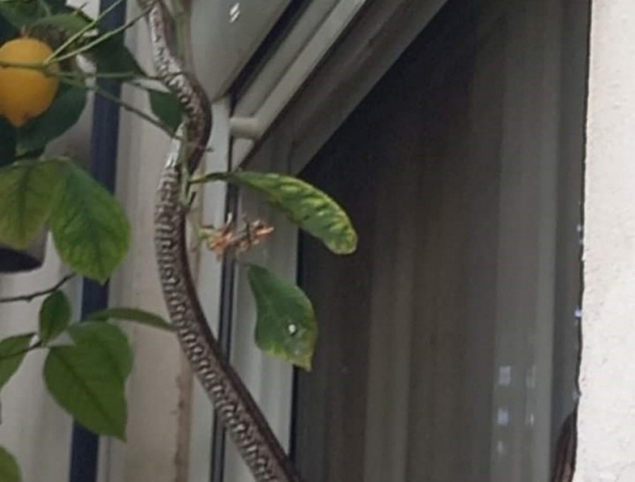 Ένας απρόσκλητος και αναπάντεχος επισκέπτης κατατρόμαξε μια ολόκληρη οικογένεια το μεσημέρι του Σαββάτου 27 Μαϊου την ώρα του μεσημεριανού φαγητού στο Μεσολόγγι. Την ώρα που η οικογένεια βρισκόταν στο τραπέζι είδε ξαφνικά στο παράθυρό της να σκαρφαλώνει ένα φίδι πάνω στο κλαδί μιας λεμονιάς που βρίσκεται κοντά στο παράθυρο.