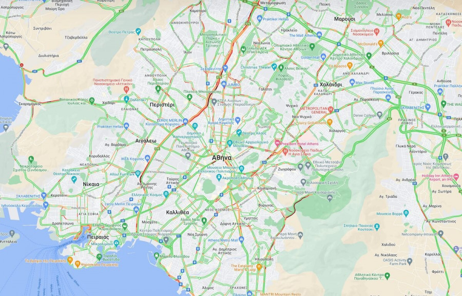Δείτε το χάρτη με την κίνηση στους κεντρικούς δρόμου του λεκανοπεδίου.