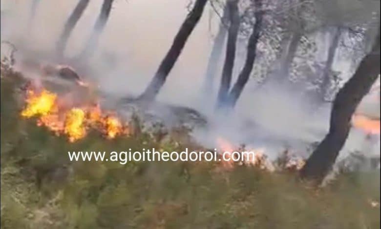 Δύσκολη είναι η κατάσταση στα Γεράνεια όρη κοντά στο Πράθι, όπου εκδηλώθηκε πυρκαγιά μετά από πτώση κεραυνού.