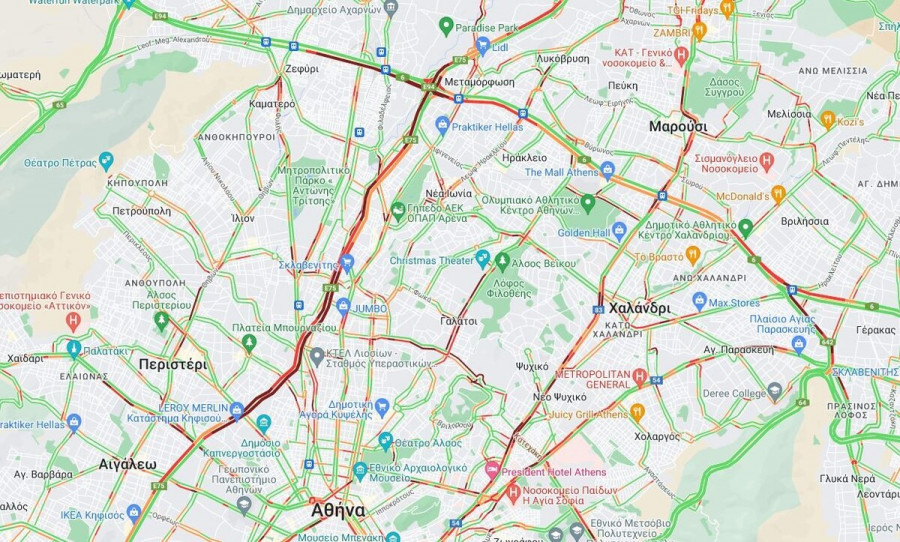 Κίνηση τώρα: Στο «κόκκινο» Κηφισός και Αττική Οδό - Σε ποιους δρόμους παρατηρούνται προβλήματα