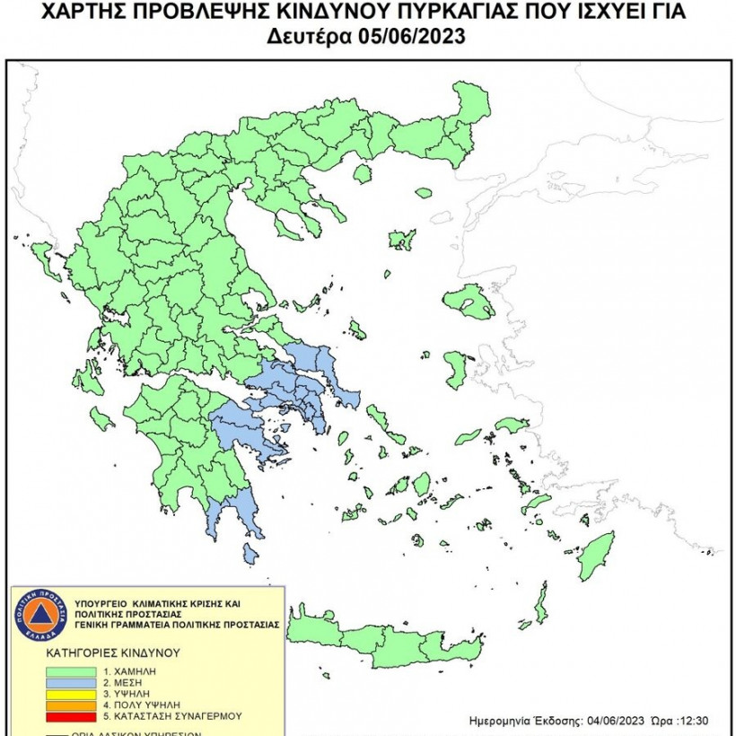Δείτε στο χάρτη τις περιοχές που αντιμετωπίζουν κίνδυνο σήμερα Δευτέρα, 5 Ιουνίου