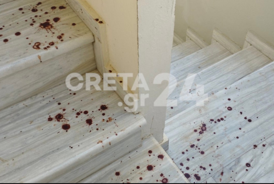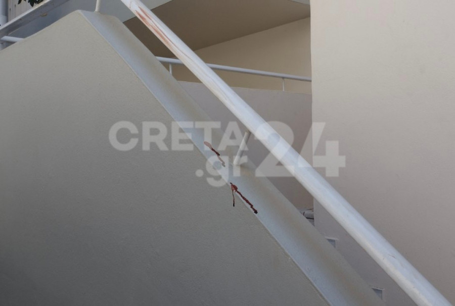 Τα ίχνη αίματος στις φωτογραφίες του Creta24 μαρτυρούν την δραματική προσπάθεια της 36χρονης να βγει στο δρόμο για να σωθεί. Κηλίδες αίματος καλύπτουν τις σκάλες του πρώτου ορόφου και φτάνουν μέχρι το δρόμο, εκεί όπου την βρήκαν οι γείτονες να φωνάζει βοήθεια.