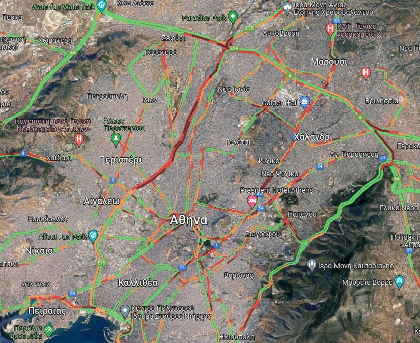 Κίνηση: Στο «κόκκινο» ο Κηφισός - Μεγάλες καθυστερήσεις και στην Αττική Οδό