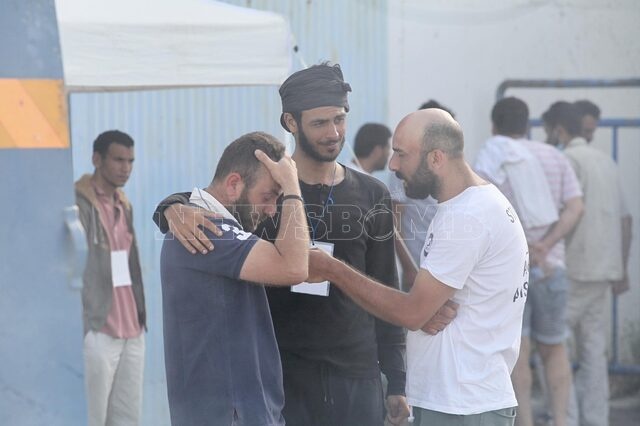 Σε χώρο μπροστά στο λιμάνι στήθηκαν σκηνές από οργανώσεις όπως η Υπατη Αρμοστεία του ΟΗΕ για τους Πρόσφυγες, ο Ελληνικός Ερυθρός Σταυρός, ο Διεθνής Οργανισμός Μετανάστευσης.