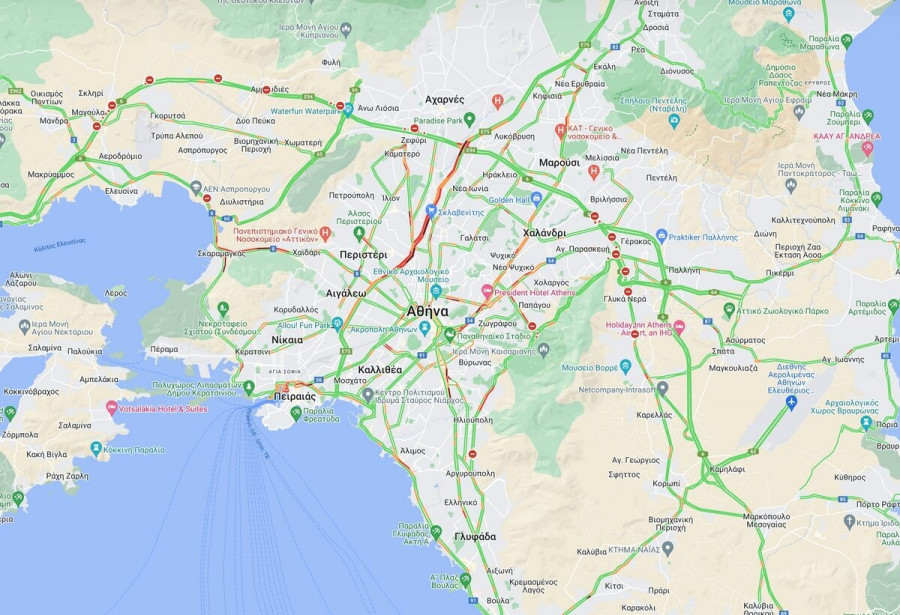 Δείτε το χάρτη με την κίνηση στους κεντρικούς δρόμου του λεκανοπεδίου.