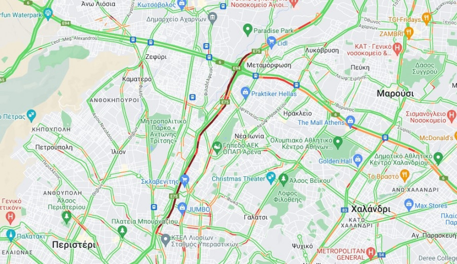 Τροχαίο ατύχημα σημειώθηκε το μεσημέρι της Κυριακής 25 Ιουνίου στην άνοδο του Κηφισού λίγο μετά τις 14:00, στο ύψος της εξόδου στην Αττική Οδό.