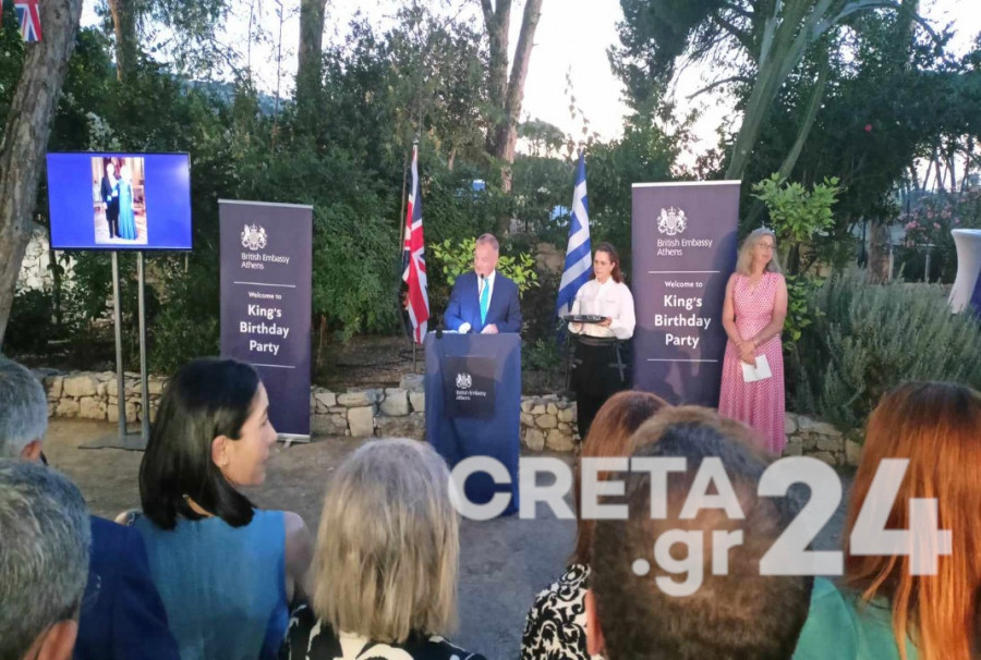 Τα επίσημα γενέθλια του Βασιλιά της Αγγλίας Καρόλου γιορτάστηκαν χθες Πέμπτη, στη διάρκεια μιας πολύ όμορφης βραδιάς με άρωμα Ελλάδας και Βρετανίας, που διοργάνωσε η Βρετανική Πρεσβεία στο Ερευνητικό Κέντρο Κνωσού της Βρετανικής Σχολής Αθηνών, στη Βίλα Αριάδνη στο Ηράκλειο, παρουσία του Πρέσβη κ. Μάθιου Λοτζ.