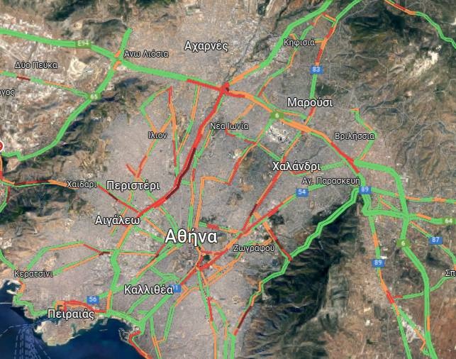 Συγκεκριμένα και στα δύο ρεύματα η κίνηση είναι ιδιαίτερα αυξημένη. Στο καθοδικό ρεύμα η κίνηση ξεκινά από τη Νέα Φιλαδέλφεια και φτάνει μέχρι το ύψος των ΚΤΕΛ, ενώ στην άνοδο παρατηρείται μποτιλιάρισμα από το Αιγάλεω μέχρι το ύψος των Αγίων Αναργύρων.