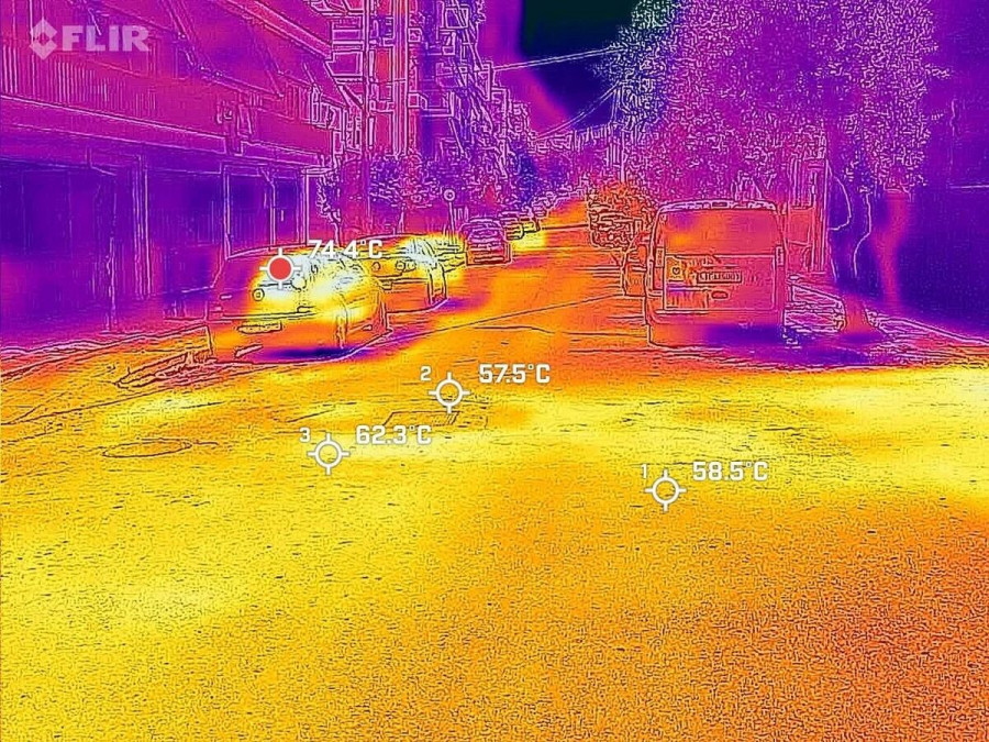 Παράλληλα και στην άσφαλτο καταγράφονται ακραίες θερμοκρασίες που πλησιάζουν τους 60 βαθμούς Κελσίου.