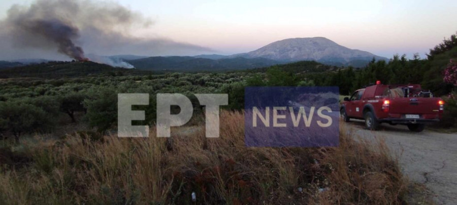 Η φωτιά, που ξεκίνησε χθες το απόγευμα, μαίνεται ακόμα, αποτεφρώνοντας δασική έκταση, ενώ στη μάχη με το πρώτο φως της ημέρας ρίχτηκαν και τα εναέρια μέσα.