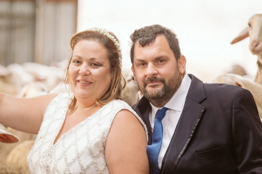 Λαρισαία φωτογραφήθηκε στον γάμο της μαζί με τον σύζυγο και τα… κορίτσια του, τις προβατίνες του!