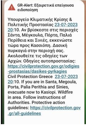 Ήδη δόθηκε 112 για εκκένωση από τους οικισμούς Πόρτες, Μέγκουλα, Σημιές, Παλιά Περίθεια και Σάγκα προς Κασσιόπη.