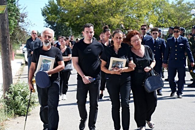 Πλήθος κόσμου συγκεντρώθηκε για να συνοδεύσει τον αδικοχαμένο πιλότο στην τελευταία του κατοικία, στον τόπο όπου ο 34χρονος έζησε τα παιδικά και εφηβικά του χρόνια, βοηθώντας στην οικογενειακή επιχείρηση του πατέρα του.