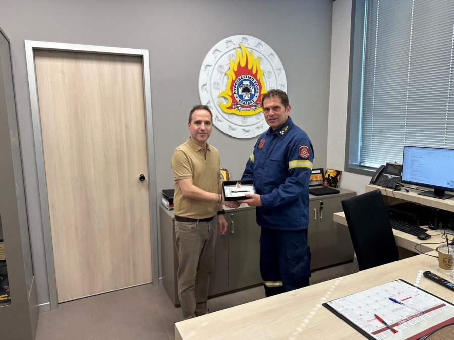 Ο Υπαρχηγός του Πυροσβεστικού Σώματος, Αντιστράτηγος κ. Μάριος Αποστολίδης δέχθηκε στο γραφείο του, τον Υπεύθυνο Δημοσίων Σχέσεων της «ΑΠΟΣΤΟΛΗΣ» κ. Ιωάννη Πεταλά και συζήτησαν τρόπους γόνιμης σύμπραξης και συνέργειας προληπτικής προστασίας.