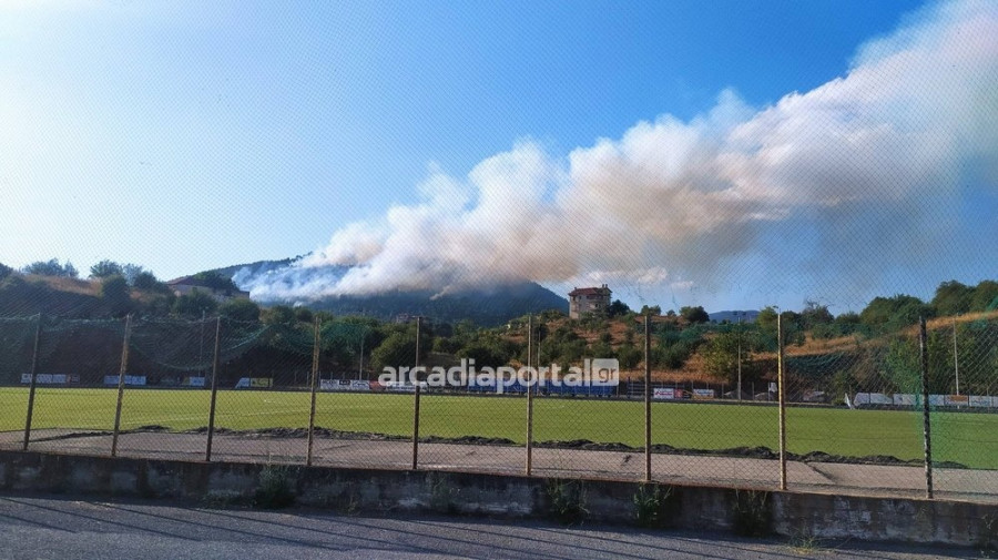 Η φωτιά είναι στις παρυφές του Μαίναλου και καίει πευκοδάσος, ωστόσο, στο σημείο επιχειρούν 75 πυροσβέστες με πέντε ομάδες πεζοπόρων τμημάτων, 13 οχήματα, έξι αεροσκάφη και δυο ελικόπτερα, ενώ υπάρχει και συνδρομή από υδροφόρες ΟΤΑ.