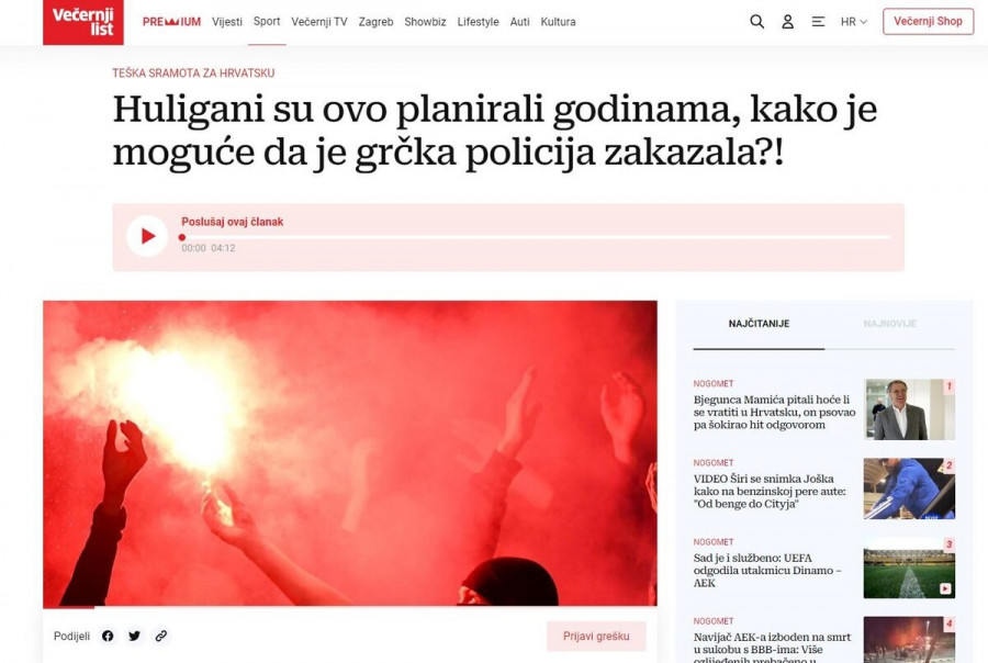 «Οι χούλιγκαν το σχεδίαζαν εδώ και χρόνια, πως είναι δυνατόν να απέτυχε η ελληνική αστυνομία;», αναφέρει χαρακτηριστικά η ιστοσελίδα στο άρθρο της. «Οι μεγαλύτεροι ένοχοι για αυτήν την κατάσταση είναι φυσικά οι Κροάτες χούλιγκαν που ξεκίνησαν για την Αθήνα παρόλο που απαγορεύονταν οι φιλοξενούμενοι οπαδοί. Για το λόγο αυτό θα πρέπει να λογοδοτήσουν απολύτως όλοι όσοι συμμετείχαν σε αυτό», τονίζουν σε άλλο σημείο ενώ αποδίδουν μεγάλες ευθύνες και στην Ελληνική Αστυνομία.