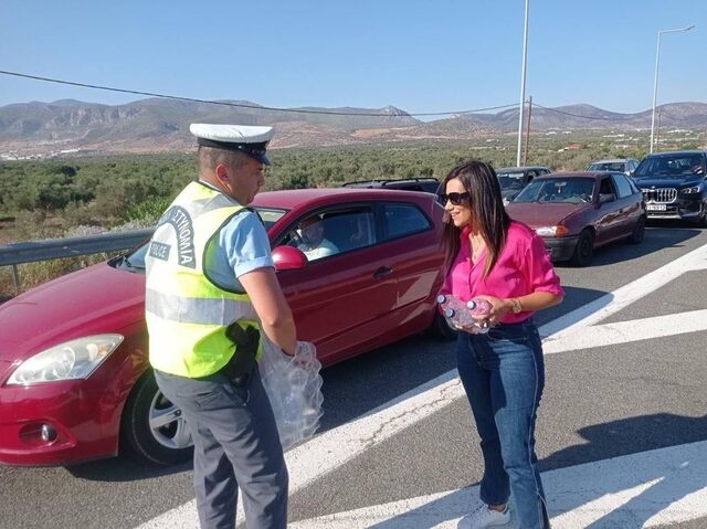 Στο σημείο έχουν σπεύσει άντρες της Τροχαίας και της Πυροσβεστικής που μοιράζουν νερά στον κόσμο που έχει εγκλωβισθεί.