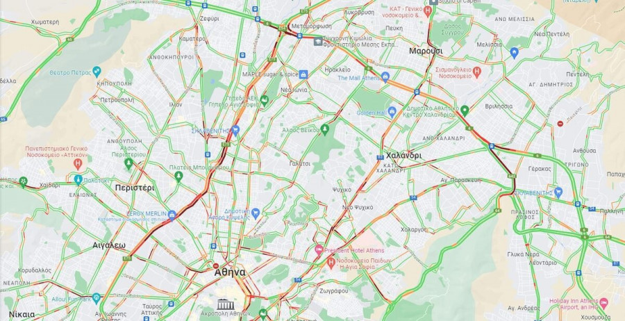 Στον Κηφισό έχουν σχηματιστεί ουρές χιλιομέτρων και στα δύο ρεύματα λόγω της σφοδρής βροχόπτωσης ενώ μεγάλα προβλήματα υπάρχουν στη Κηφισίας, την Ποσειδώνος και την Αττική Οδό.