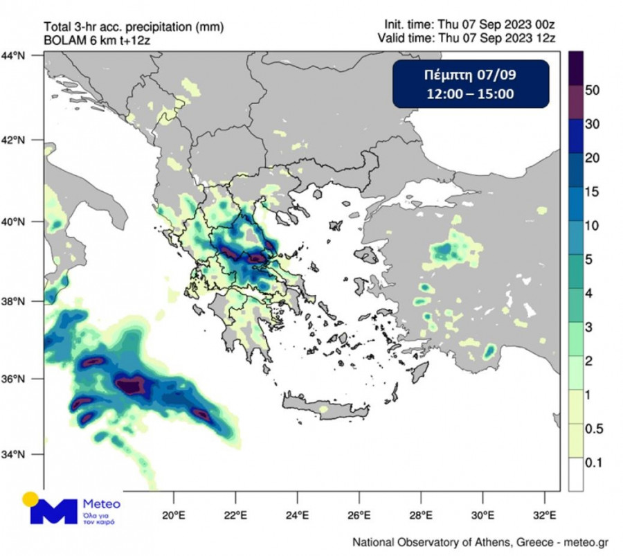 Σύμφωνα με την κατηγοριοποίηση του επεισοδίου βροχόπτωσης (RPI), η οποία εφαρμόζεται από τη μονάδα Meteo του Εθνικού Αστεροσκοπείου Αθηνών, το επεισόδιο βροχόπτωσης για την Πέμπτη 07/09, υποβαθμίζεται στην Κατηγορία 4 (Πολύ σημαντική).