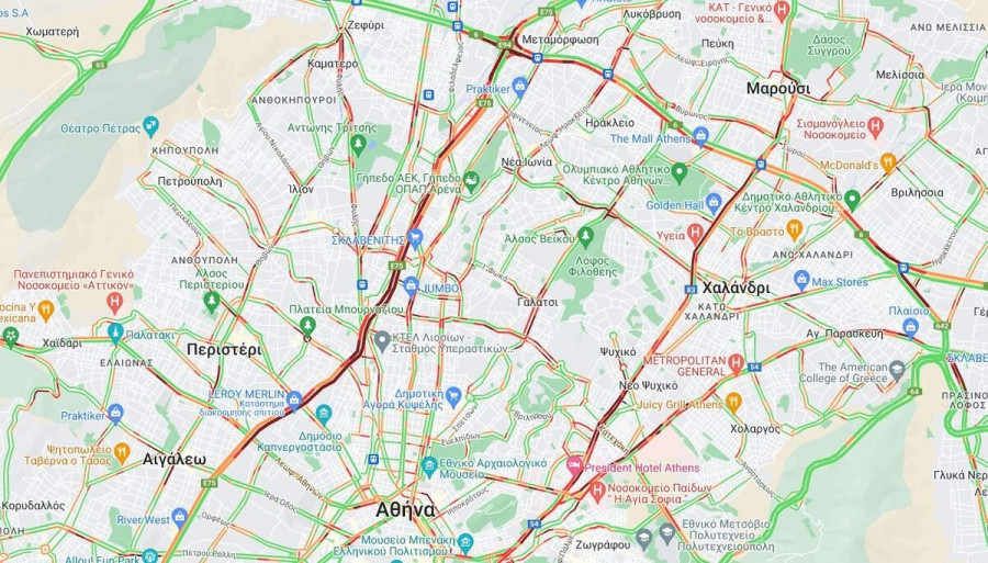 Κίνηση τώρα: Κυκλοφοριακό κομφούζιο στους δρόμους - Στο «κόκκινο» Κηφισός και Κηφισίας