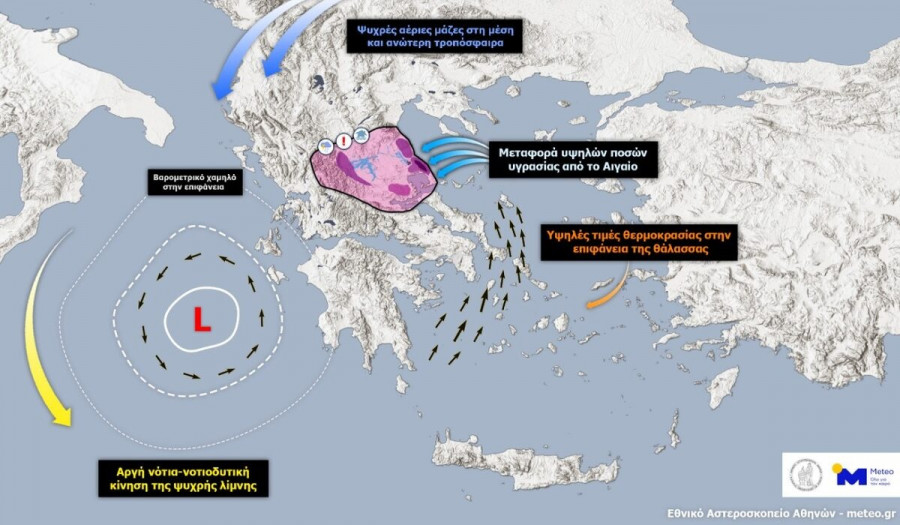 4. Η αλληλεπίδραση των ορεινών όγκων με την ισχυρή μεταφορά υδρατμών, η οποία και συνέβαλε στην εκδήλωση πιο ραγδαίων βροχοπτώσεων, όπως συνέβει για παράδειγμα στο Πήλιο όπου και καταγράφηκαν τα μεγαλύτερα ύψη βροχής στους μετεωρολογικούς σταθμούς του Εθνικού Αστεροσκοπείου Αθηνών/meteo.gr.