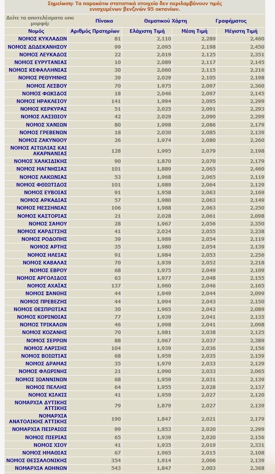 Δείτε αναλυτικά τη λίστα για τις τιμές της αμόλυβδης 95 οκτανίων ανά περιοχή: