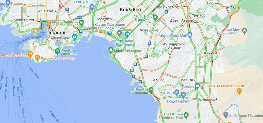 Και στον Πειραιά και τη Λεωφόρο Ποσειδώνος παρατηρείται κίνηση σε συγκεκριμένα κομμάτια.