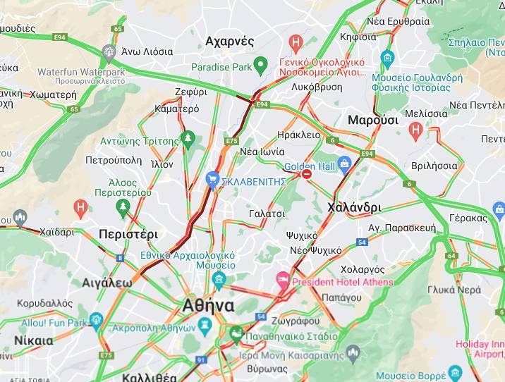 Από τις 07:00 το πρωί έχουν αρχίσει να «κοκκινίζουν» Κηφισός και Λεωφόρος Κηφισίας ενώ δύσκολη είναι η κατάσταση και στους δρόμους γύρω από το κέντρο.