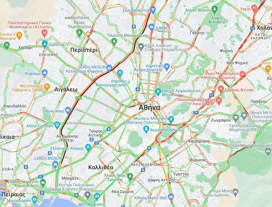 Συγκεκριμένα το μποτιλιάρισμα αρχίζει από τον Ρέντη και καταλήγει στη Νέα Φιλαδέλφεια, με μια μπορντό γραμμή να σχηματίζεται στον χάρτη δείχνοντας τις μεγάλες καθυστερήσεις στην άνοδο.