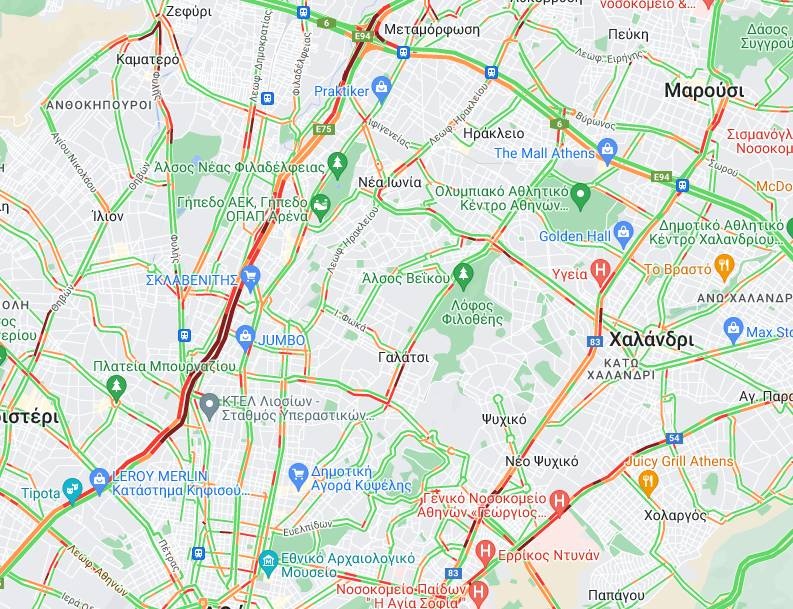 Κίνηση τώρα: Στο κόκκινο ο Κηφισός - Δείτε τον χάρτη