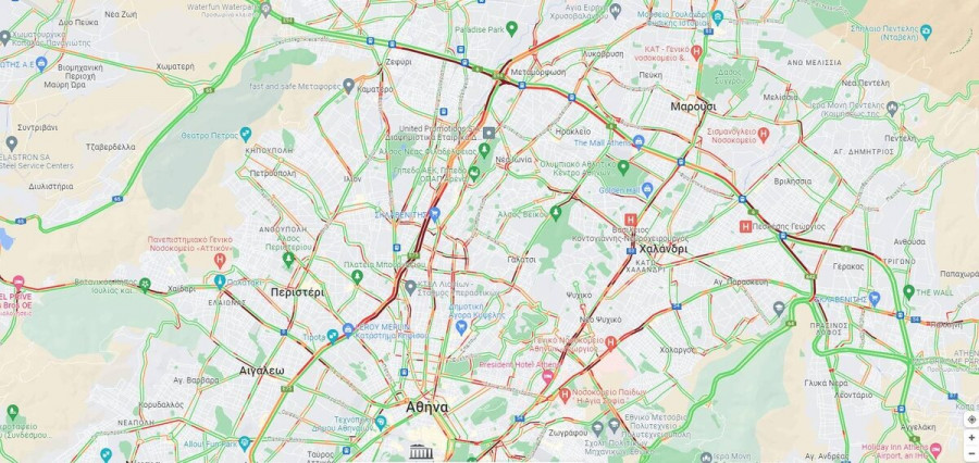 Αυξημένη κίνηση στο κέντρο της Αθήνας, τον Κηφισό, την Ποσειδώνος και την Αττική Οδό.
