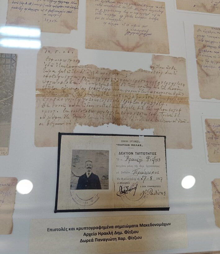 «Ο παππούς του κ.Φίτζιου ήταν Μακεδονομάχος και είχε κρατήσει με ιδιαίτερη προσοχή μια συλλογή 24 επιστολών και μηνυμάτων γραμμένων σε χαρτί που αντάλλασσαν μεταξύ τους οι Μακεδονομάχοι για να ενημερώνουν ο ένας τον άλλον πότε θα έρθει ο οπλισμός, πότε πρέπει να είναι σε κάποιο σημείο για συνάντηση ή συνεννόηση. Τα περισσότερα από αυτά τα μηνύματα που υπάρχουν στα χαρτιά εκείνης της εποχής είναι κρυπτογραφημένα», προσθέτει ο κ. Νικόλτσιος.