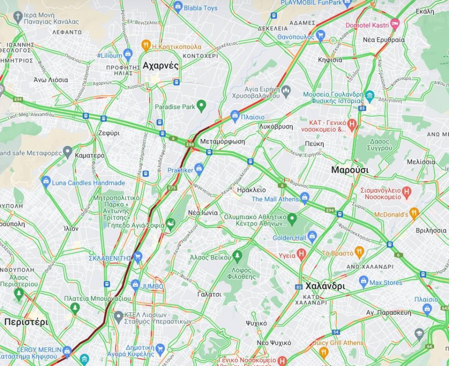 Κίνηση τώρα: Στο «κόκκινο» ο Κηφισός - «Ουρές» χιλιομέτρων στην κάθοδο (Δείτε χάρτη)