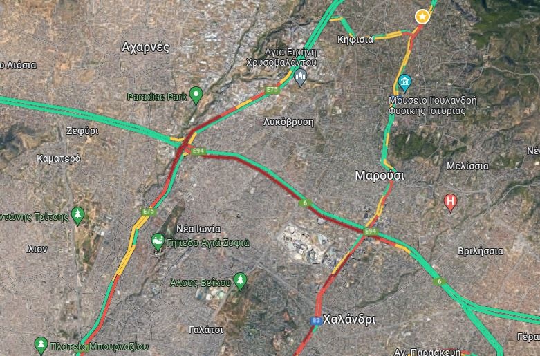 Συγκεκριμένα καθυστερήσεις σημειώνονται στο ρεύμα προς Αεροδρόμιο, διάρκειας 25-30 λεπτών από κόμβο Μεταμόρφωσης έως κόμβο Πεντέλης.
