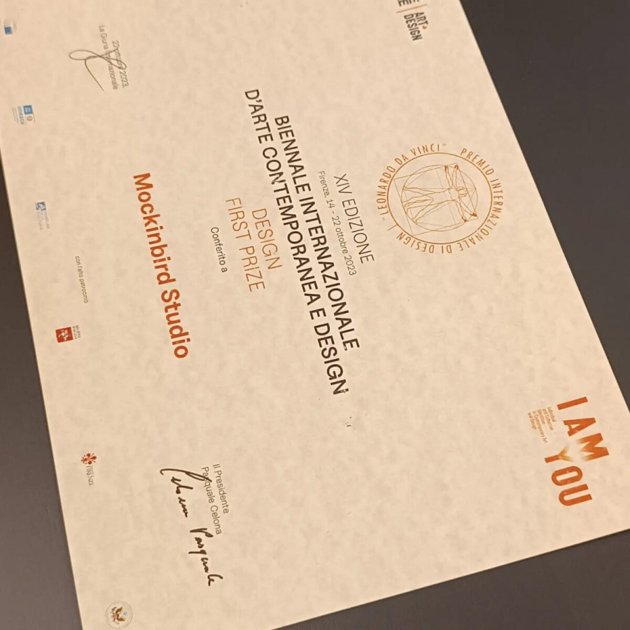 Με αυτές μας τις δημιουργίες ήμασταν υποψήφιοι για το βραβείο «Leonardo da Vinci» International Award (Design) στον διαγωνισμό που έλαβε χώρα κατά τη διάρκεια της έκθεσης ενώ αξιολογήθηκαν από διεθνούς φήμης κριτική επιτροπή. Μέλη της κριτικής επιτροπής ήταν εξέχουσες προσωπικότητες από τον κόσμο της τέχνης και του design με διεθνή καταξίωση, οι οποίοι αξιολόγησαν τα έργα όλων των συμμετεχόντων τόσο στην κατηγορία της Συγχρονης Τέχνης όσο και του Design.