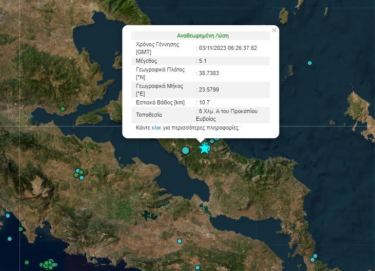 Σημειώνεται ότι σύμφωνα με την Αναθεωρημένη Λύση του Γεωδυναμικού Ινστιτούτου, ο σεισμός σημειώθηκε στις 8:26, το επίκεντρο εντοπίζεται στα 6 χιλιόμετρα ανατολικά του Προκοπίου Ευβοίας. Το εστιακό βάθος υπολογίζεται στα 14,2 χιλιόμετρα.