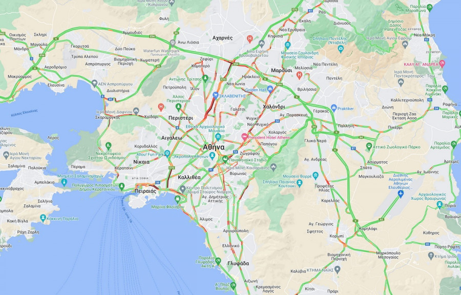 Κίνηση τώρα: Δείτε στον χάρτη, την κίνηση που επικρατεί στους κεντρικούς δρόμου του λεκανοπεδίου.
