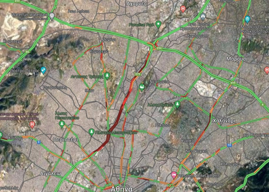 Πολύ αυξημένη είναι η κίνηση στη Λ. Κηφισού, από νωρίς το πρωί της Παρασκευής, καθώς παρατηρούνται σημαντικές καθυστερήσεις και στα δύο ρεύματα.