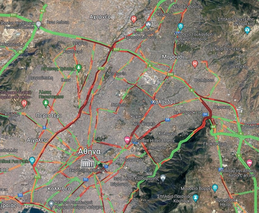 Συγκεκριμένα μποτιλιάρισμα πολλών χιλιομέτρων έχει σχηματιστεί στην κάθοδο του Κηφισού από τη Νέα Κηφισιά και το οποίο φτάνει μέχρι την Ιερά Οδό. Πολλές είναι οι δυσκολίες και στην άνοδο, από το Μαρούσι προς την Φιλοθέη.