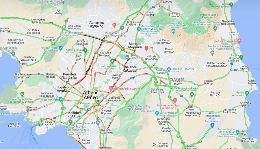 Κίνηση Τώρα: Ιδιαίτερα αυξημένη είναι η κίνηση στους δρόμους του λεκανοπεδίου της Αττικής.