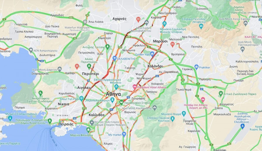 Ο Κηφισός, η Αττική Οδός και η Κηφισίας είναι στο «κόκκινο» ενώ δύσκολη είναι η κατάσταση και για το κέντρο της Αθήνας.