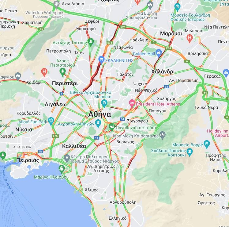 Καθυστερήσεις και στην Αττική Οδό στο ρεύμα προς Αεροδρόμιο από τον κόμβο Μεταμόρφωσης έως τον κόμβο Κηφισίας. Καθυστερήσεις σημειώνονται και στις εξόδους για Λαμία (ρεύμα προς Αεροδρόμιο και προς Ελευσίνα).