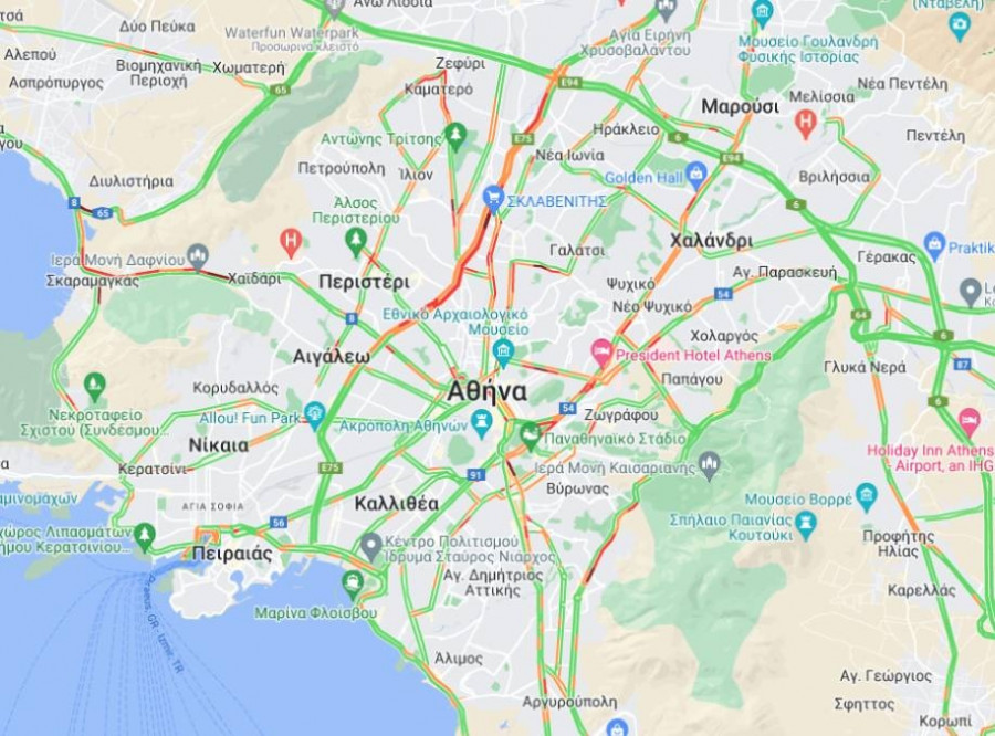 Συγκεκριμένα, μποτιλιάρισμα εντοπίζεται στη Λεωφόρο Κηφισού, στην άνοδο από το ύψος του Περιστερίου έως τη Νέα Φιλαδέλφεια και στην κάθοδο από την Αττική Οδό έως την Πέτρου Ράλλη.