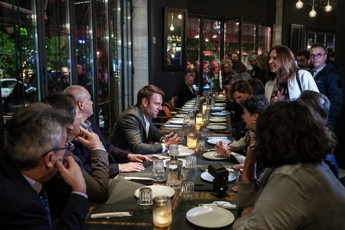 Ο πρόεδρος του ΣΥΡΙΖΑ ΠΣ Στέφανος Κασσελάκης και τα μέλη της κοινοβουλευτικής ομάδας σε καφέ - εστιατόριο στο Παγκράτι