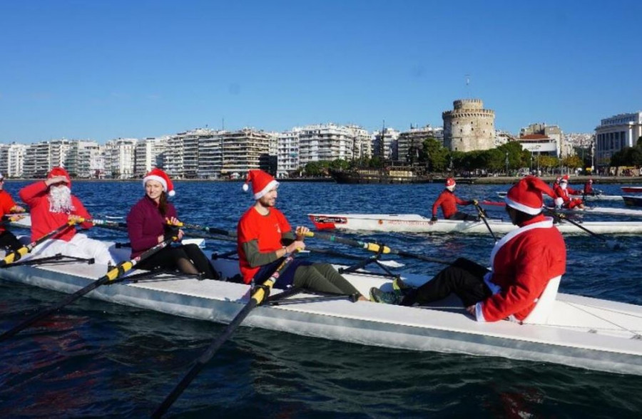 Οι Άγιοι Βασίληδες στη Θεσσαλονίκη τράβηξαν κουπί στα νερά του Θερμαϊκού. Δεκάδες Άγιοι Βασίληδες, αψηφώντας το τσουχτερό κρύο κωπηλάτησαν το πρωί της Δευτέρας κατά μήκος της Νέας και της Παλιάς παραλίας, προσφέροντας ένα πολύ ευχάριστο θέαμα σε όσους τους παρακολουθούσαν. Ιδιαίτερα όσα παιδιά έτυχε να τους δουν να κωπηλατούν στον Θερμαϊκό ντυμένοι με τη χαρακτηριστική φορεσιά του Άϊ Βασίλη, εντυπωσιάστηκαν από το θέαμα.