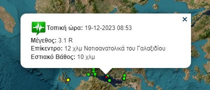 Σεισμός μεγέθους 3,1 βαθμών της κλίμακας Ρίχτερ σημειώθηκε το πρωί της Τρίτης (19/12) στο Γαλαξίδι.